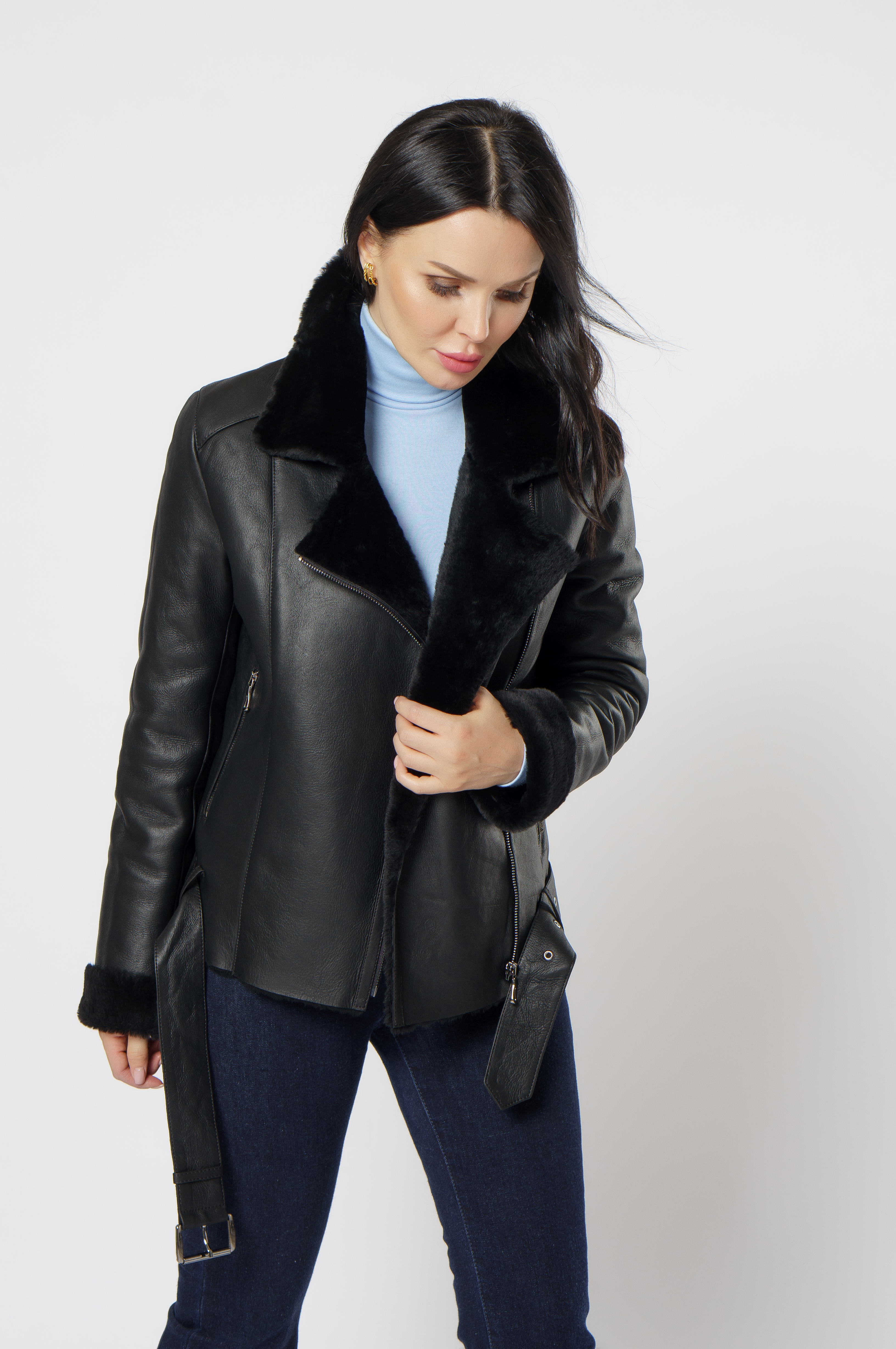 Женская дубленка косуха из овчины в классическом черном цвете - одна из самых популярных моделей за последние года. Стильный фасон, сохранение тепла и качественные долговечные материалы - основные причины ее популярности. Подойдет для молодой и активной девушки, которая следит за модой и любит комфорт. Модель дополняют ремень и молния.