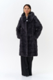 Шуба из меха норки черного цвета. Изделие средней длины, но его можно укоротить, как и рукава. Застегивается с помощью шубных крючков и пуговицы. Модель прямого фасона и дополнена объемным капюшоном. Раскладка меха - поперечные пластины. Подклад из полиэстера износоустойчив и позволяет носить шубу долгое время. Модель сочетается как с брюками, так и с юбками.