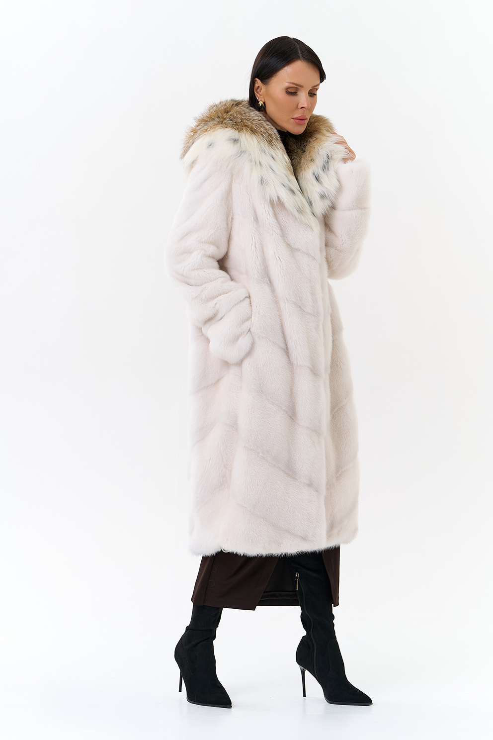 из рыси смотрится изящно. Пластины меха расположены в диагональном раскладе.
