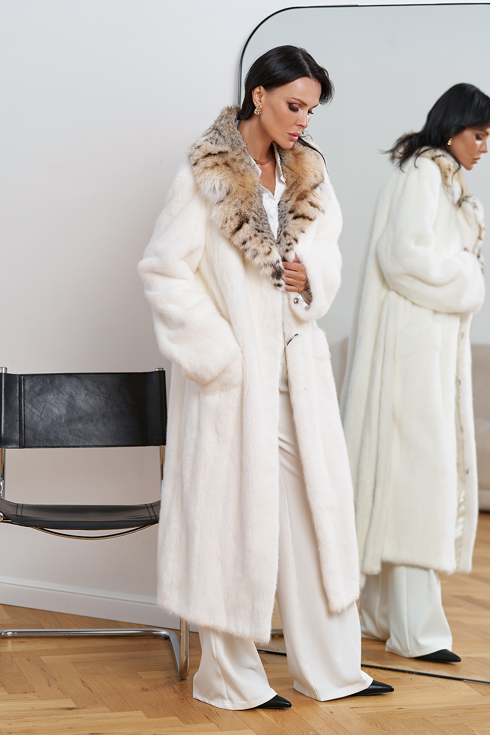 Для жителей Миасса у нас действует беспроцентная рассрочка и кредит на выбранный товар — Женская белая шуба из меха норки с воротником из меха рыси артикул miass30669. Если у вас остались вопросы напишите или позвоните нам, и мы на них ответим.